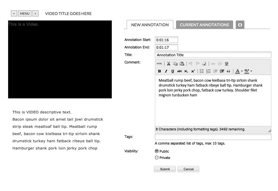 The Collaborative Annotation Tool (CATOOL) allows multiple users to tag and annotate text, imagery, and video. Challenge was to display the appropriate data and input fields in an intuitive manner that didn't require a legend or help screen. The app was also spec'd to be responsive for mobile devices.