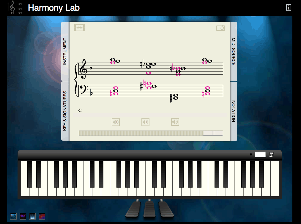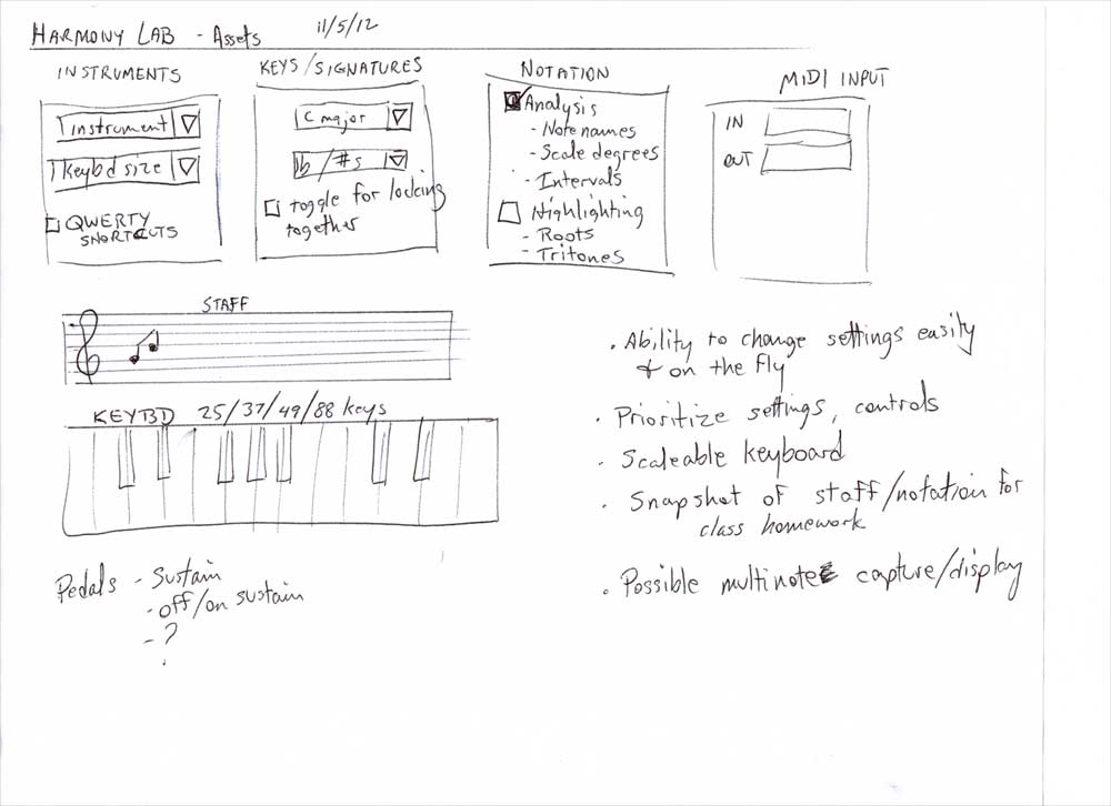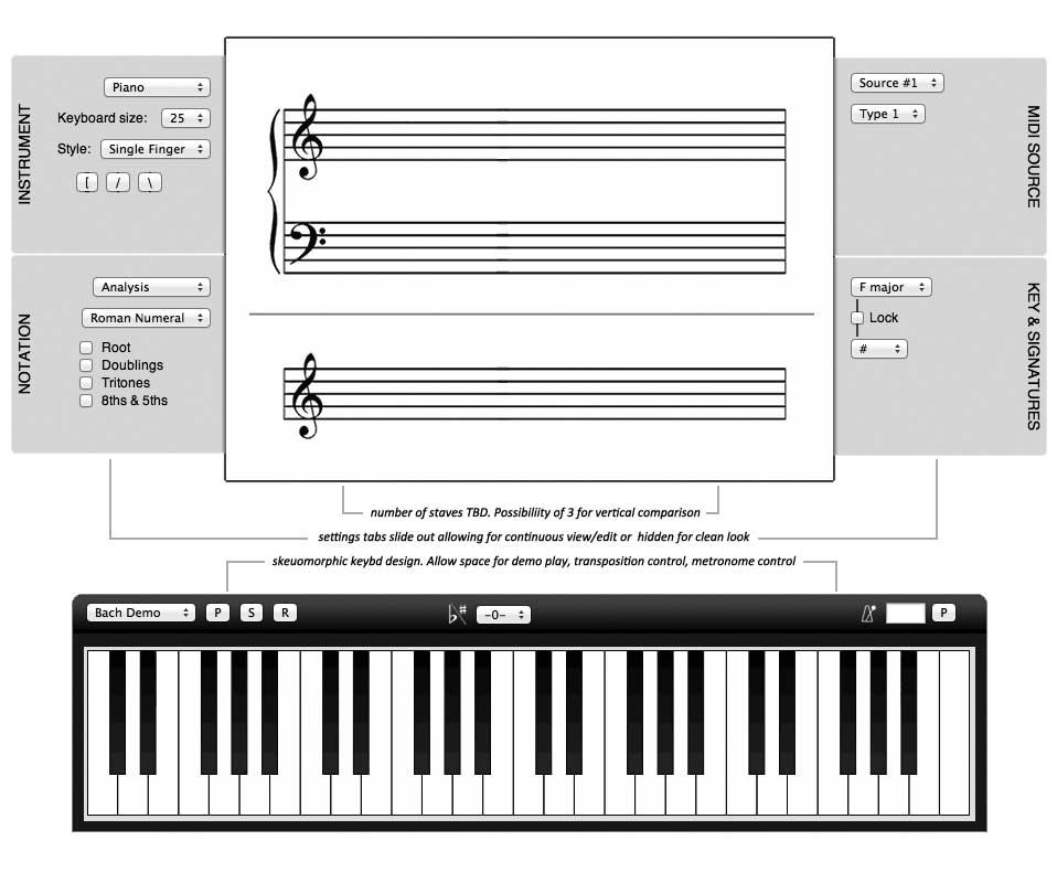 The Harmony Lab web app started out as a student-built proof-of-concept that we used as abaseline for functionality. I then used this to gather assets & expectations for the updated function & design. After user analysis, I developed the interface & informational layout in Photoshop from which an html mockup was created. Developers then used the html mockup as a template for the final product. After product launch, I mocked up some additional future enhancements (individual note playback & scrolling).