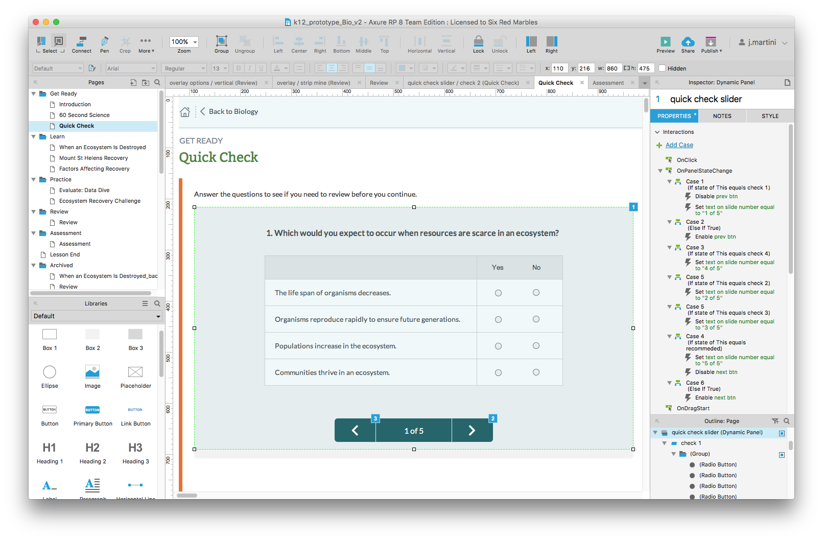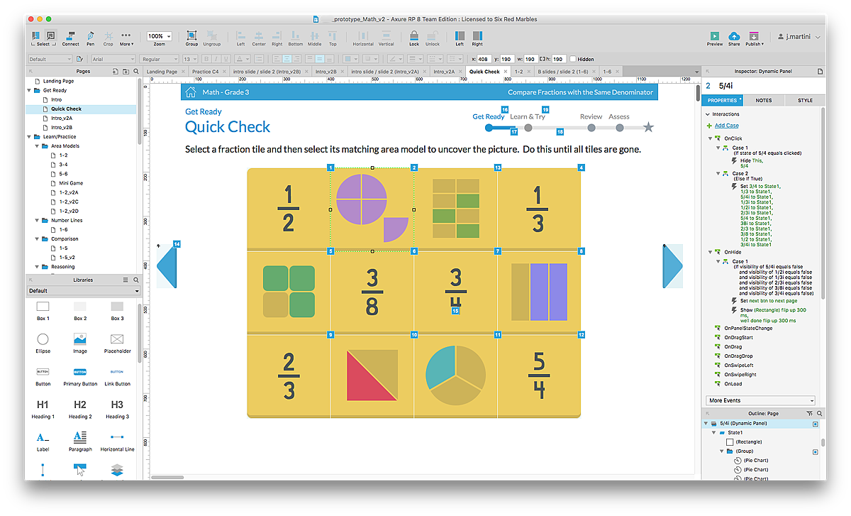 at Six Red Marbles, I was tasked with the UX/UI design for 2 Interactive E-Learning prototypes, to be created & coded in Axure. Working within a time-compressed 6 week delivery schedule, I worked with SMEs and Learning Experience team to create these axure prototypes utilizing interactive features like drag & drop, programatic animations, and conditional click-thru coding.
